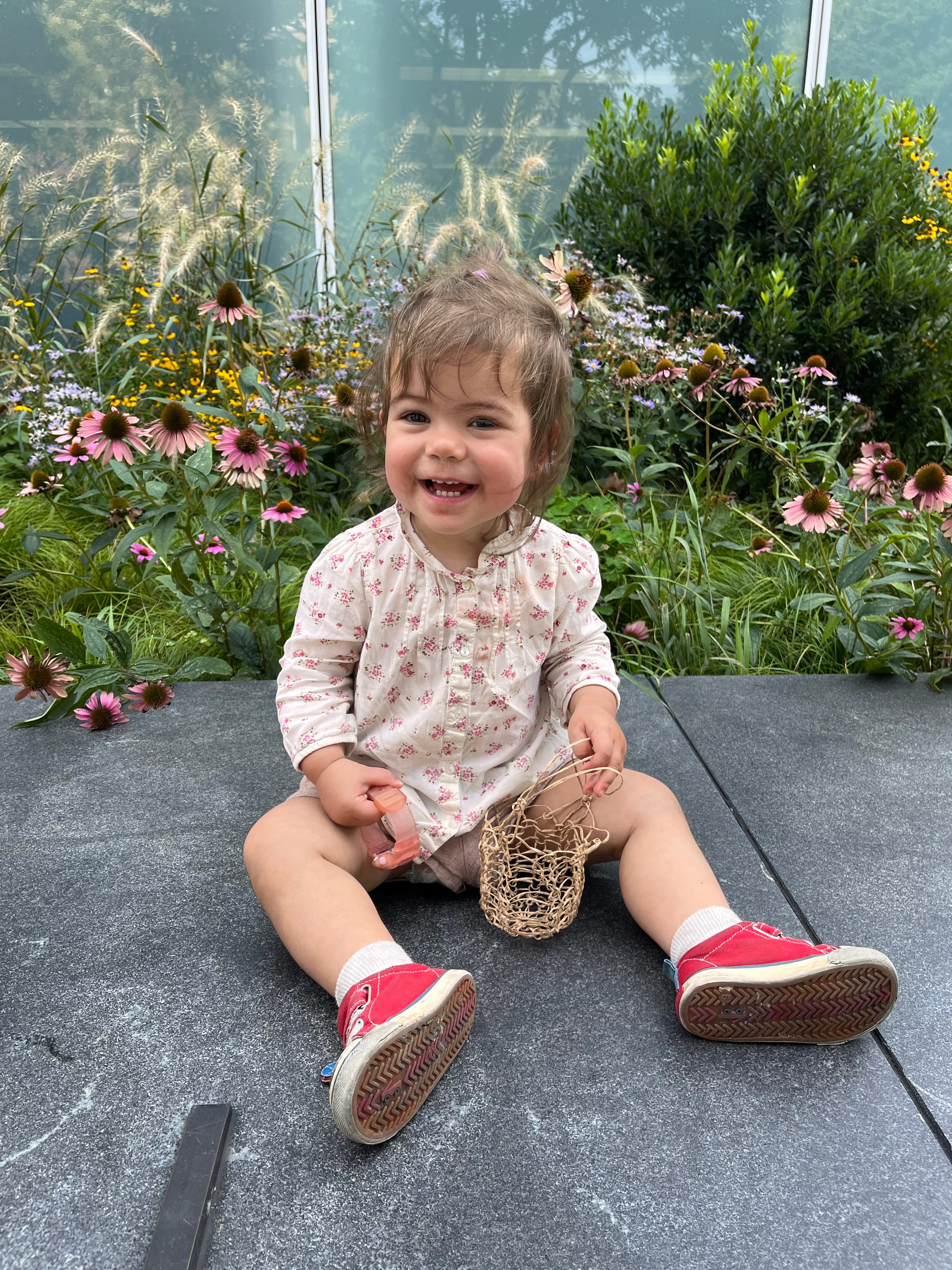 Throughout the summer Esme’s independence has blossomed. She’s communicating her thoughts about the world around her, making her preferences known and is eager to be an active member of our household. She can navigate the food co-op on foot and will often carry a bag home for a couple of blocks proudly. She seemingly lives to sort the recycling and is always ready to help out with a kitchen project. She loves to feed the people she loves, apply lotion to our legs and knows to be gentle when someone is unwell. When Brian had his appendix removed in the start of July she learned to say ‘dada ouchie belly,’ which she reminded herself for the month when he couldn’t pick her up or cuddle with her.