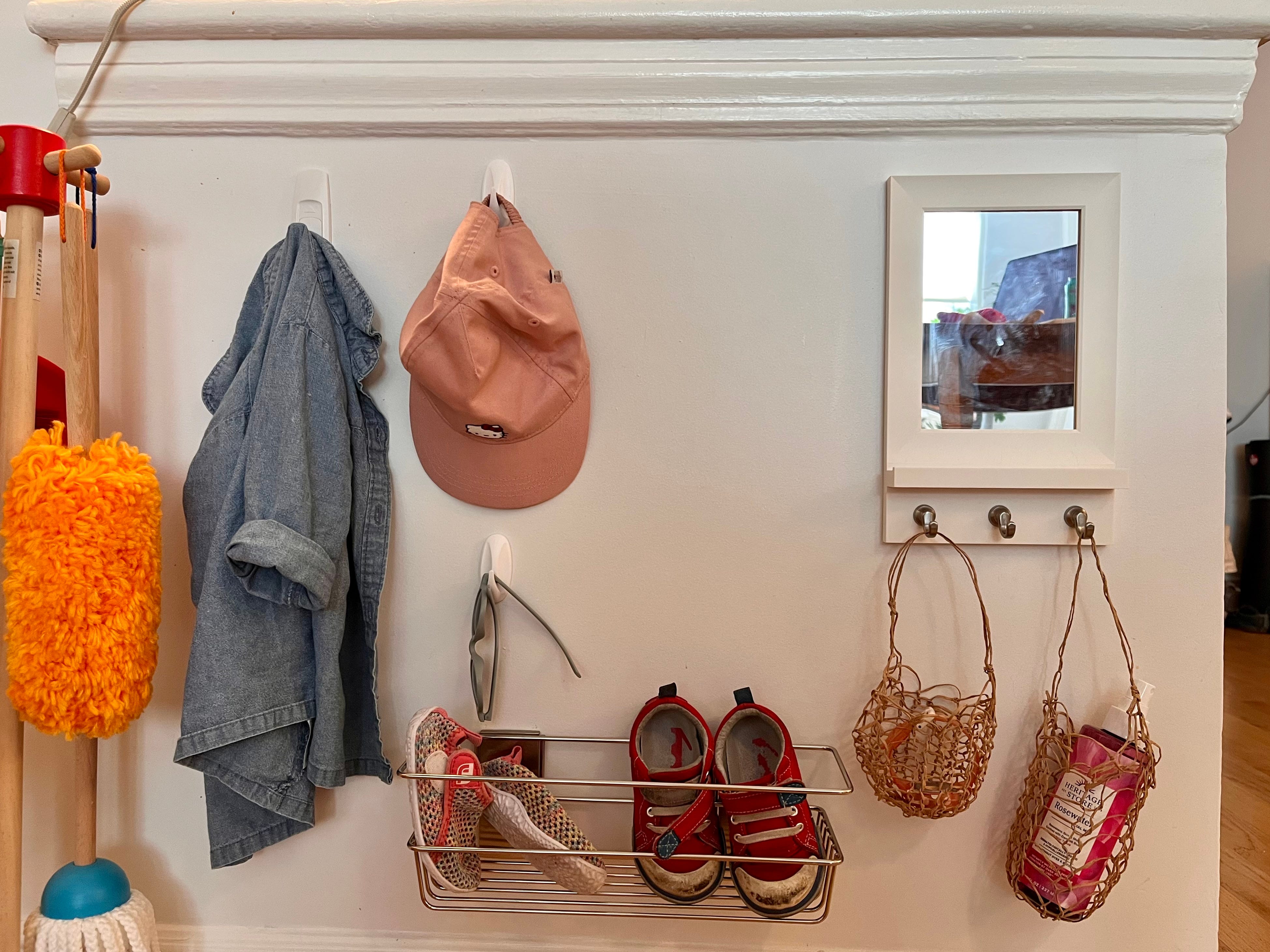 Esme’s getting ready space is a mishmash of different Command hook products, which has made it easy to adapt as her needs change. Ideally I’d love to find a slightly larger mirror for her so she can brush her teeth in the morning here, but for now this set-up is working well.